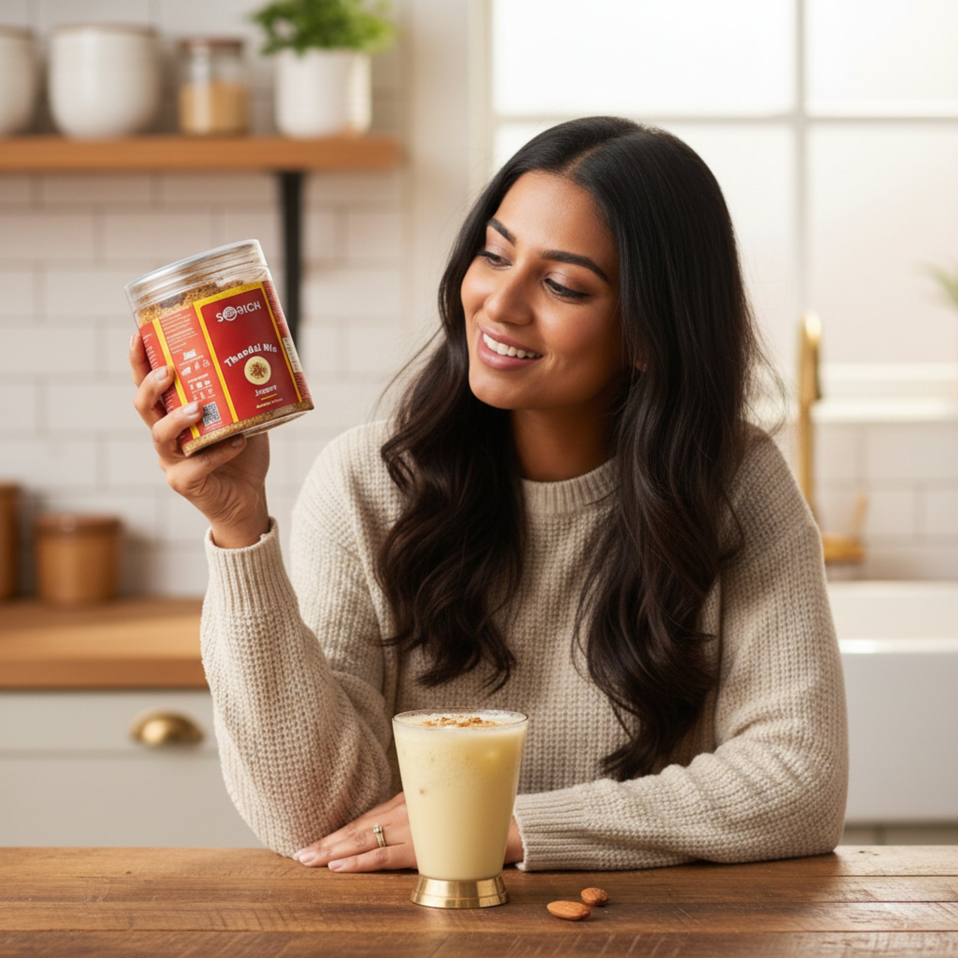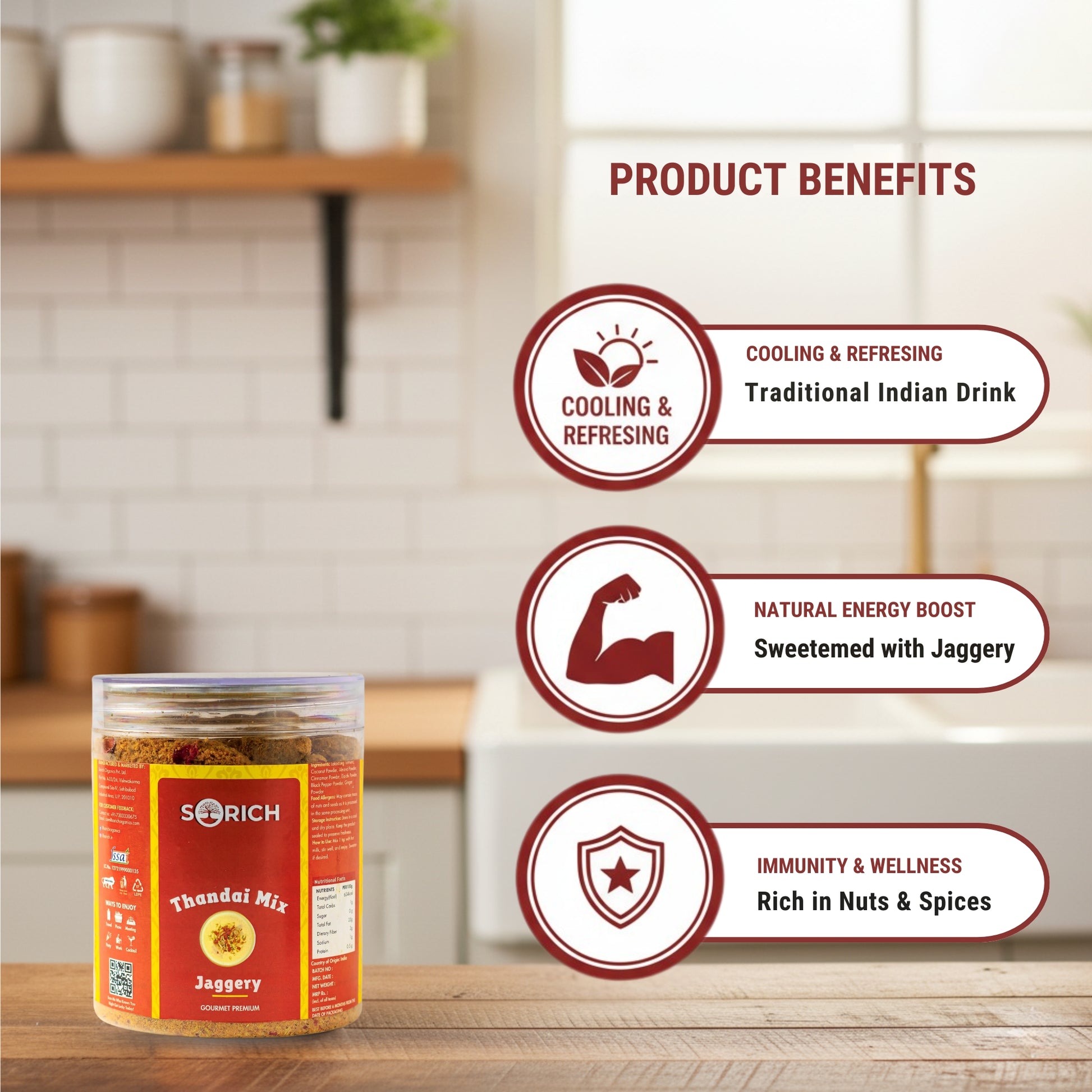 Authentic Thandai Flavour: A traditional blend of nuts, seeds, and aromatic spices, sweetened naturally with jaggery for a rich, festive taste.