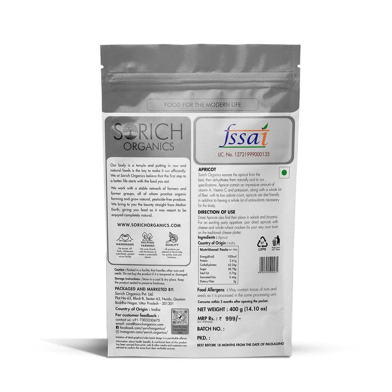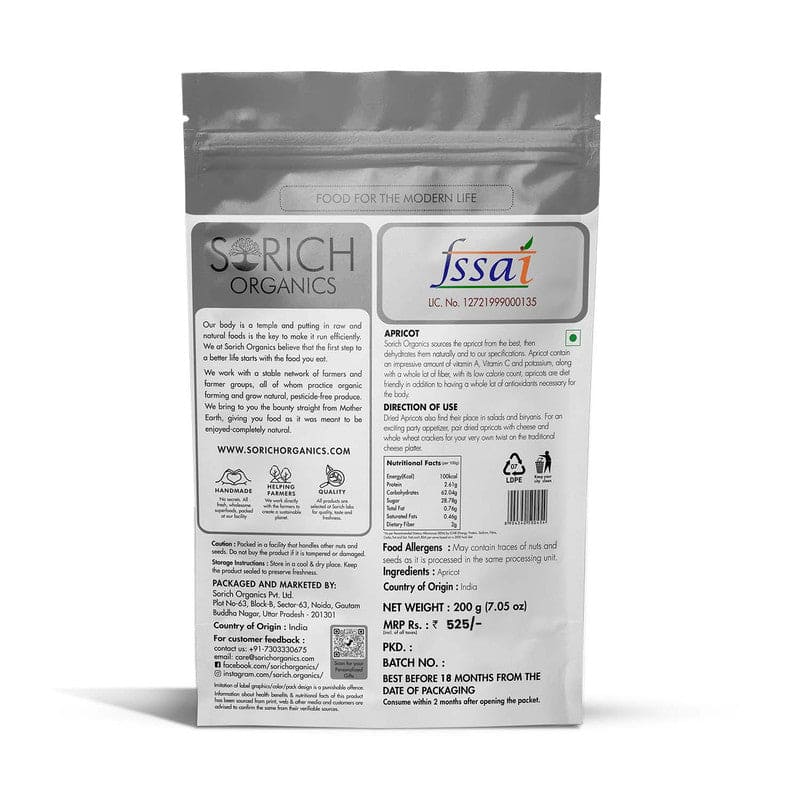 Quality Factor :- Sorich sources the apricot from the best, then dehydrates them naturally and to our specifications.