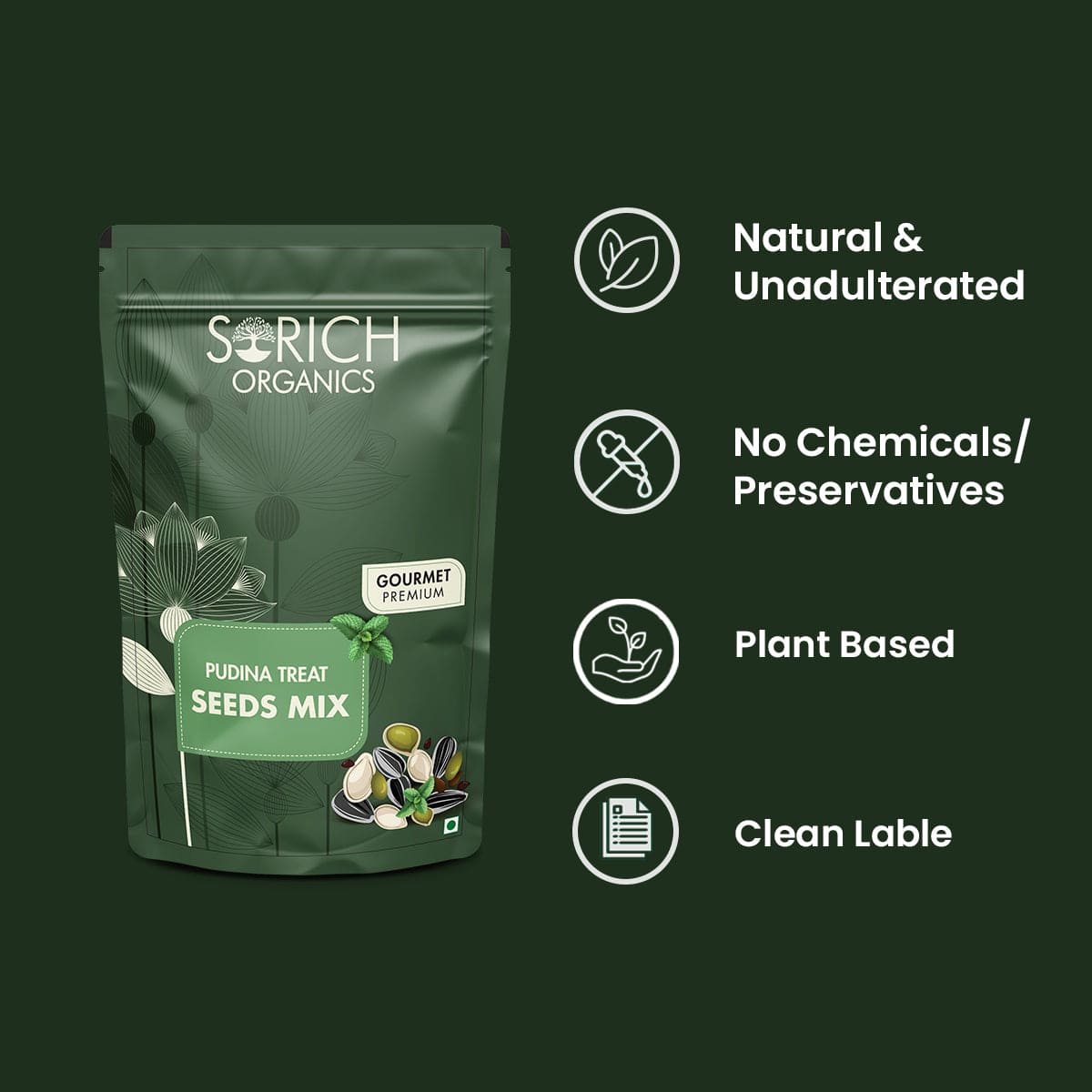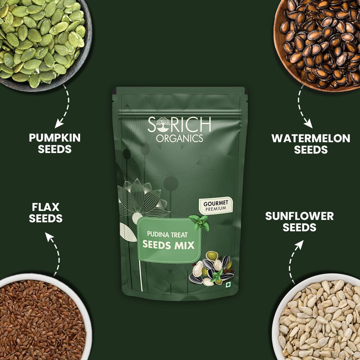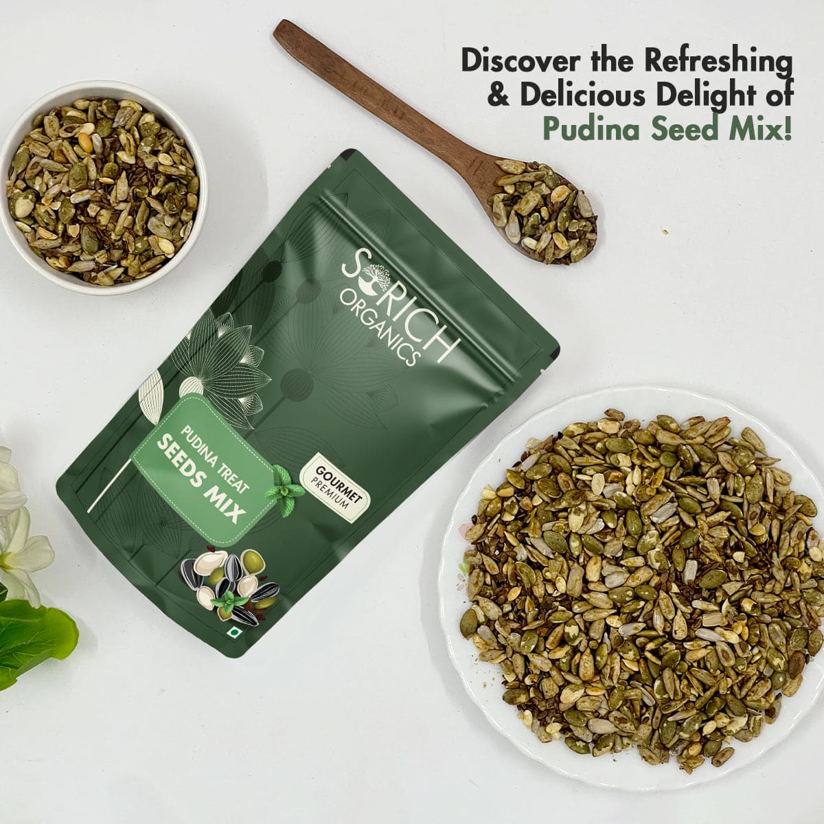 - PUDINA FLAVOR - A blend of special spices for the perfect pudina taste. Munch on these delicious pudina seed mix anytime & fulfill your cravings.Great evening snack & perfect for serving the guests at parties.