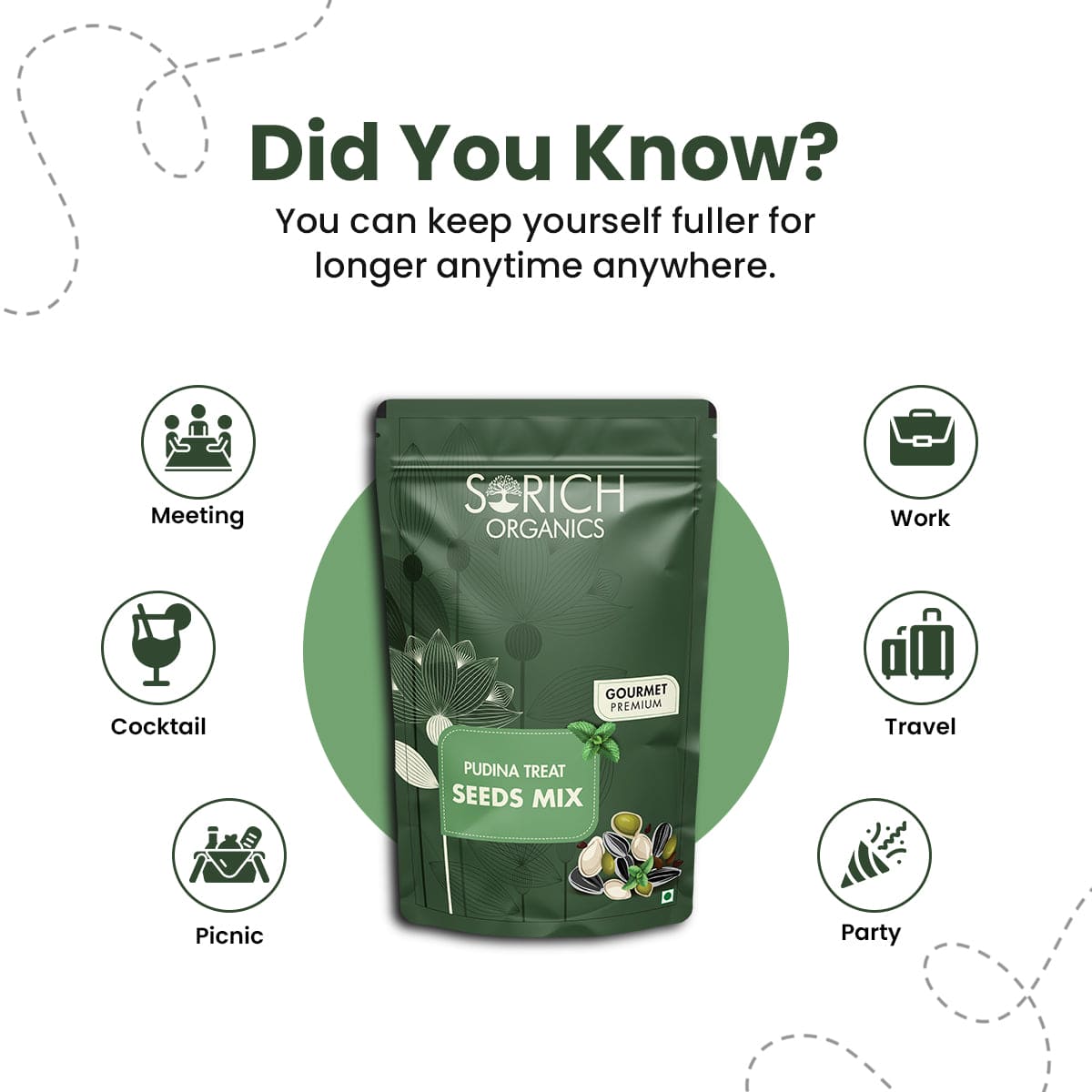 View compare- NUTRIENT-RICH PUDINA SEED MIX - Mouth watering pudina flavored seed mix will satiate your hunger pangs & fulfill your daily requirements of nutrition. Rich in antioxidants, Magnesium, Zinc, Iron, and Protein.