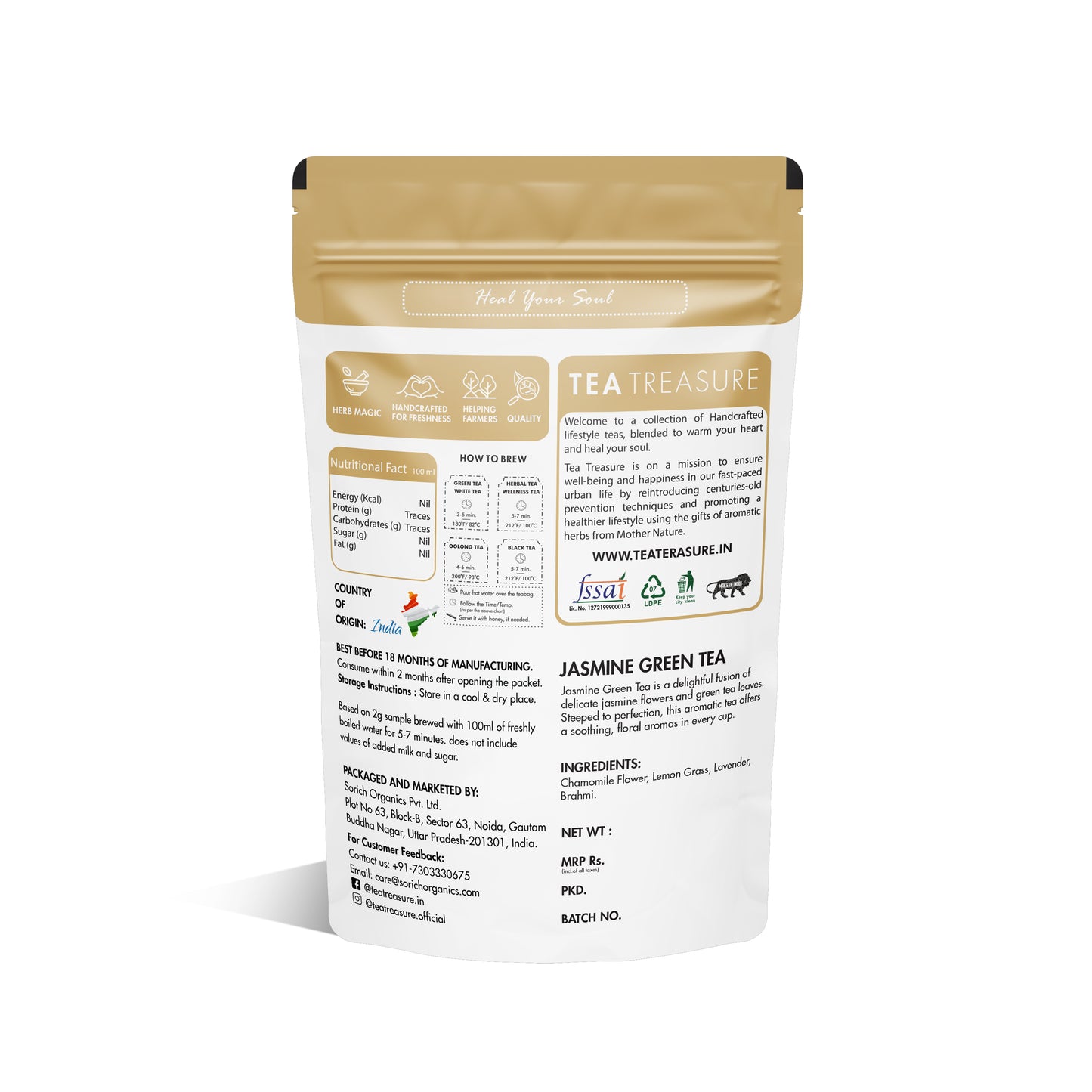 Jasmine buds are kept with tea leaves for a certain time and then the processing happens. This is done to give a natural flavor to the tea. This seals the health benefits completely and provides aromatic cups. No flavors added.