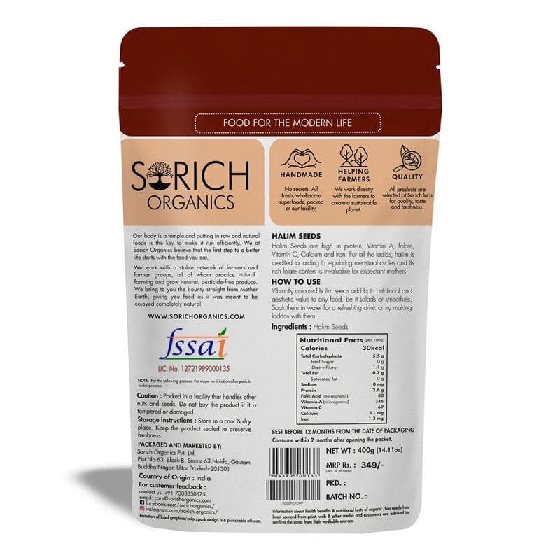 Quality Factor - Sorich sources halim seeds from trusted Indian farmers and assures that the product contains no additives or preservatives. We work with farmers directly and aim to produce the best quality products that are completely natural.