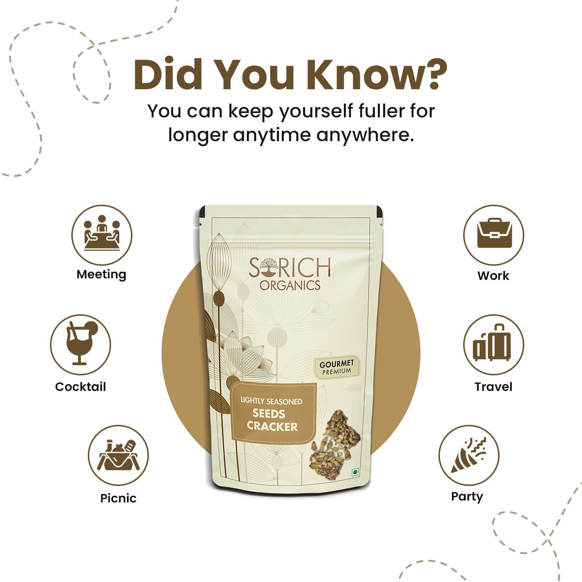 - INCREDIBLY HEALTHY - Our Lightly Seasoned 7 in 1 Seeds Cracker are made without a single drop of oil! They are a great healthy snack for hunger pangs, party snacking, kids snacking! A super healthy, nutritious guilt free snack to munch on at any time of the day!