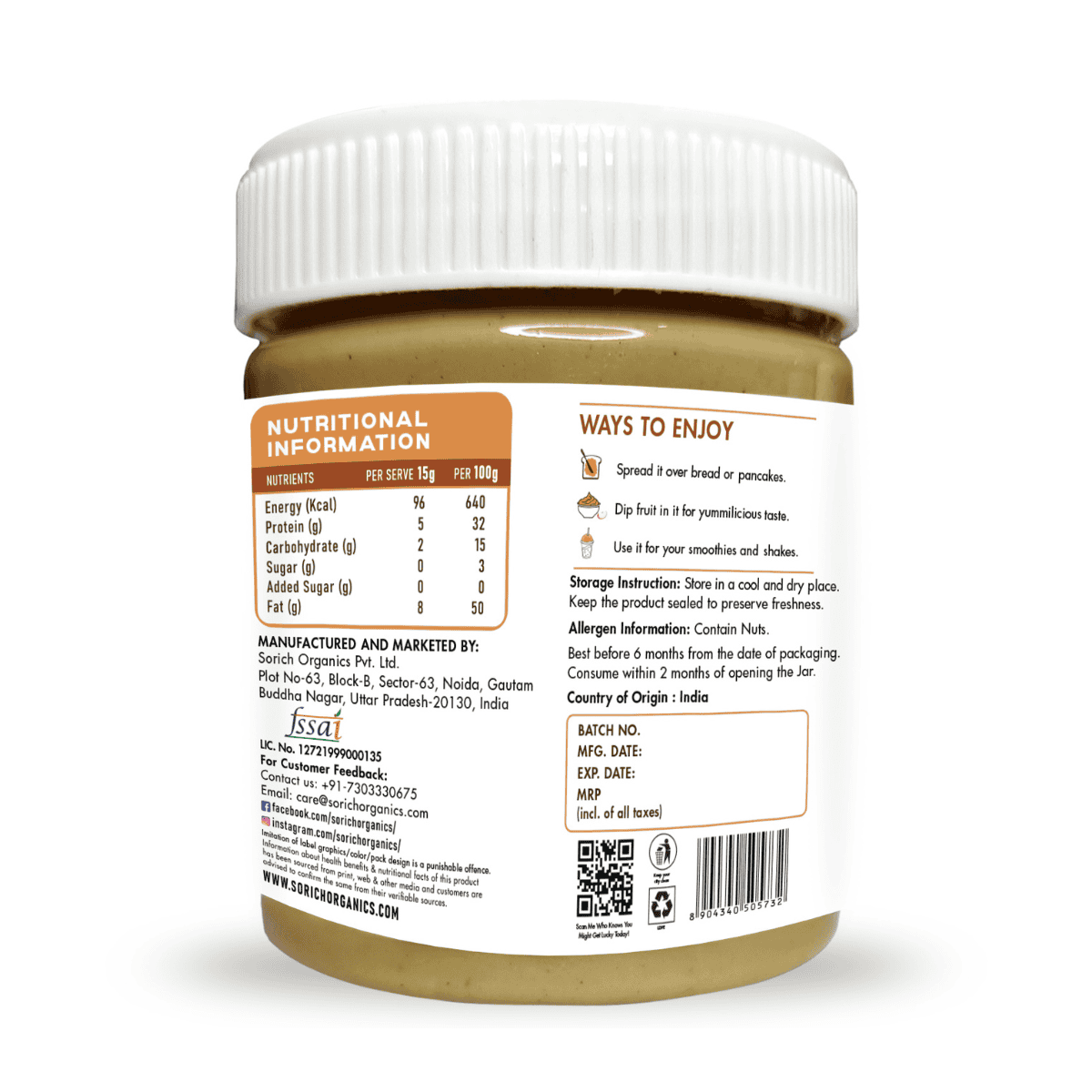 WHY OIL ON THE TOP? - Oil separation is a good sign of how natural your peanut butter is, with no stabilizer used in it. Store it upside down to avoid oil separation. Stir it well, and you’re good to go with nutty goodness!
