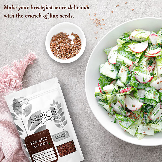 3.Roasted Flax Seeds Are Rich in Dietary Fiber - With so much fiber packed in each tiny seed, adding flax seeds to your diet promotes regular bowel movements and can improve your digestive health.