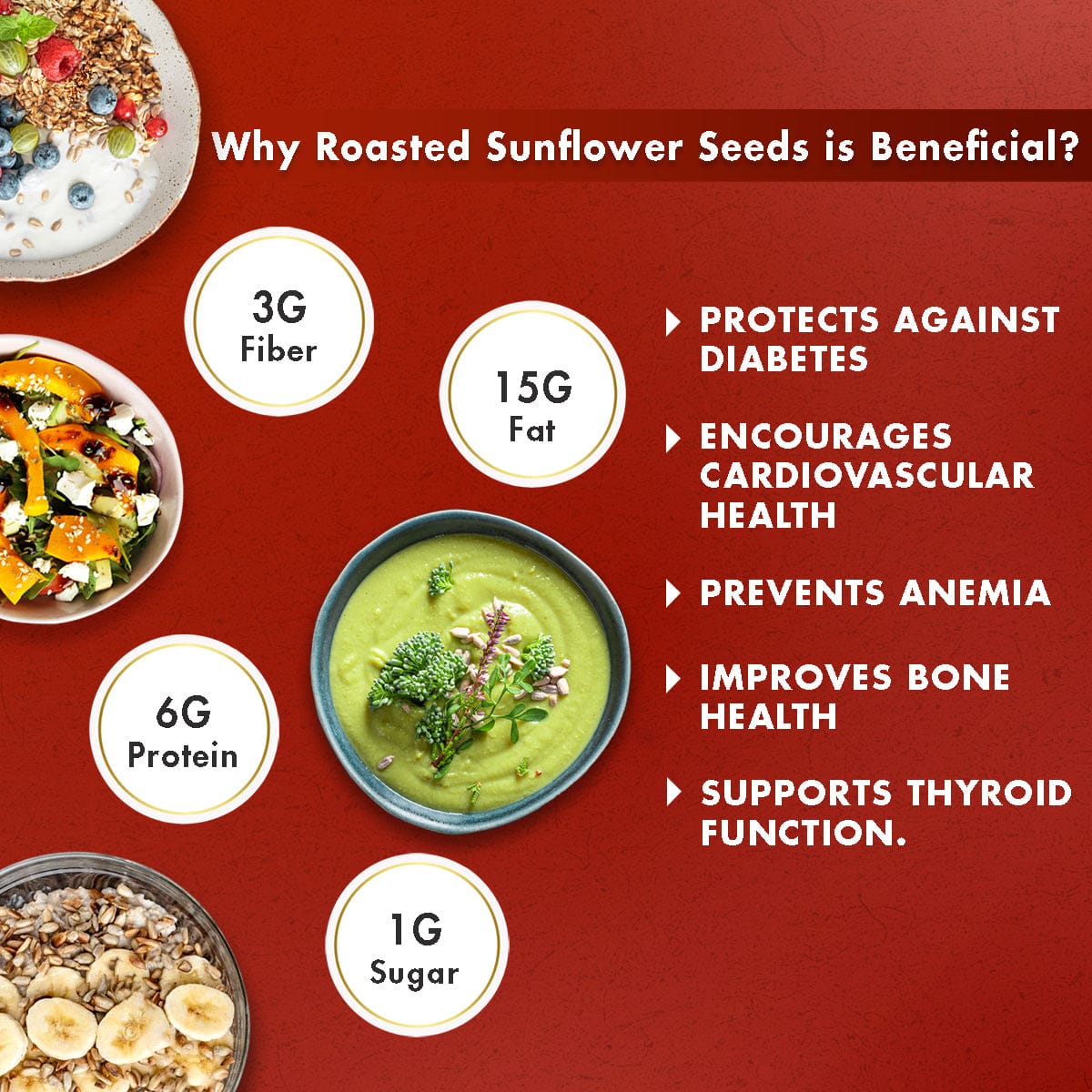 - Healthy snack: Roasted Sunflower seeds are good for Skin which can help you look young. It can also help maintain healthy hair.